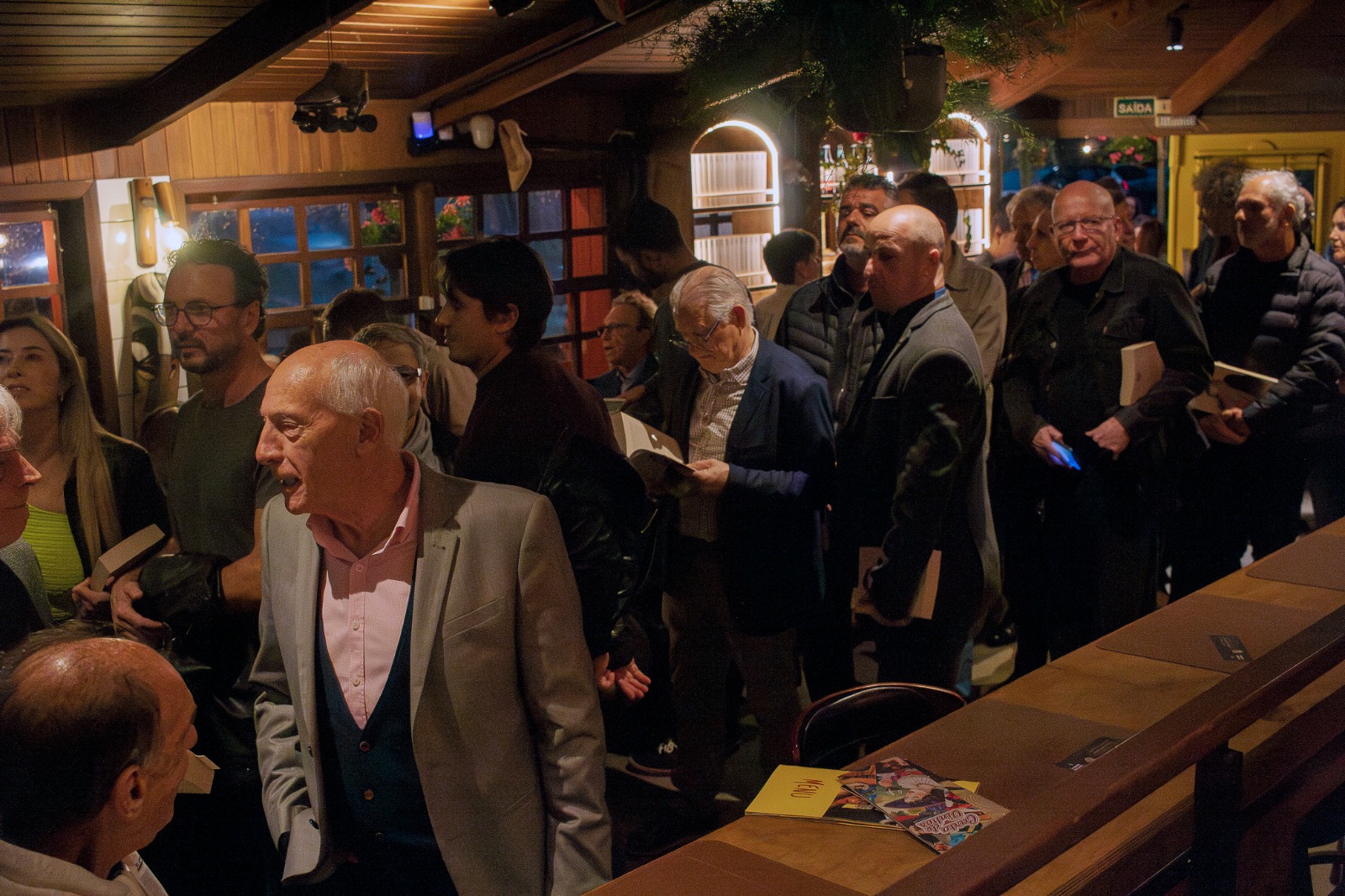 Antes mesmo do início oficial do evento, marcado para as 18 horas, já havia fila desde a rua, debaixo de guarda-chuvas, para autógrafos e fotos com os autores Carlinhos Neves e Caibar Pereira Magalhães Júnior.
